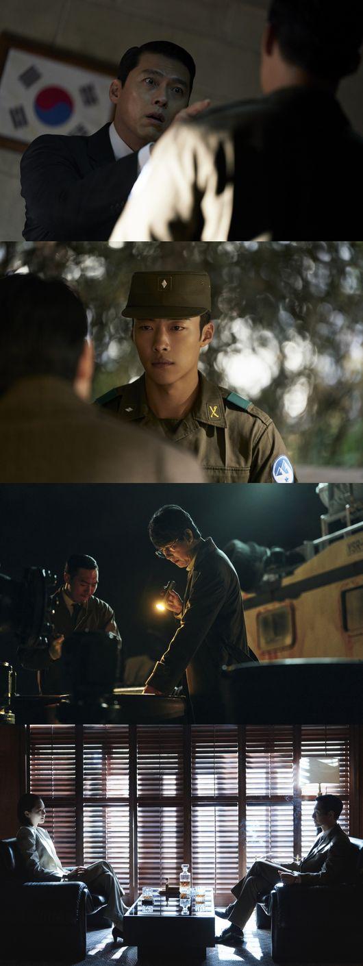 먼저, 군복 차림으로 수색에 나선 ‘백기태’(현빈)의 모습은 그동안 작품 속에서 보여준 얼굴과는 전혀 다른 분위기를 자아내 눈길을 끈다. 군복을 입은 채 긴장이 역력한 표정의 ‘백기태’ 스틸은 그의 숨겨진 서사에 대한 궁금증을 자극한다. 한편, 4회의 충격적인 결말 이후, 충격에 휩싸인 ‘장건영’(정우성)을 포착한 스틸은 앞으로 펼쳐질 그의 변화에 대한 관심을 상승시킨다.