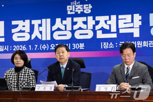구윤철 부총리 겸 재정경제부 장관이 7일 서울 여의도 국회 의원회관에서 열린 2026년 경제성장전략 당정협의에서 모두 발언을 하고 있다. 2026.1.7/뉴스1 ⓒ News1 유승관 기자 |
