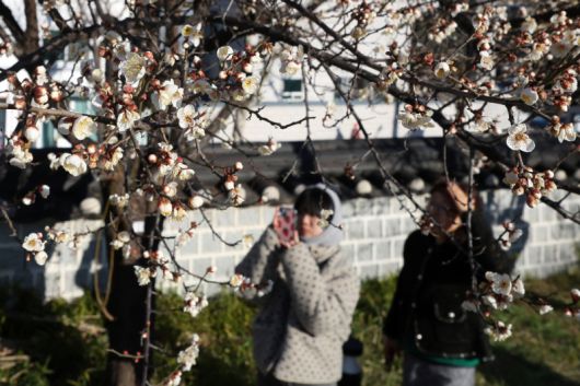 ‘아직 한겨울인데...’ 활짝 핀 봄꽃 매화