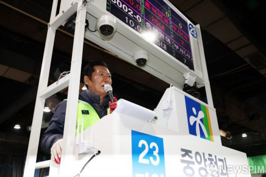 [서울=뉴스핌] 정일구 기자 = 정청래 더불어민주당 대표가 7일 오전 서울 송파구 가락동 농수산물도매시장 경매장을 현장 방문해 인사말 하고 있다. 2026.01.07 mironj19@newspim.com