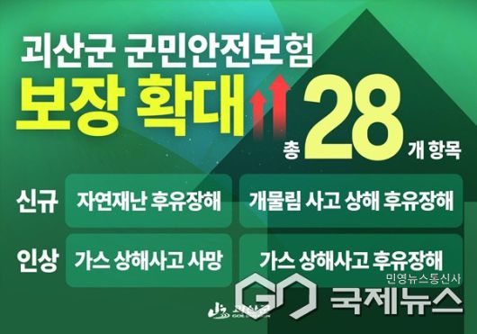 (괴산=국제뉴스) 이재기 기자 = 충북 괴산군(군수 송인헌)은 예기치 못한 사고와 재난으로 피해를 입은 군민의 일상 회복을 돕고 안전하게 생활할 수 있는 2026년도 군민안전보험을 확대 운영한다.