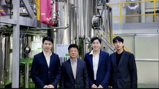 진바이오팜 공장에서 진바이오팜 권기대 대표와 파마이노베이션 정종윤 대표가 태국 VJ Health Solutions CEO와 기념 촬영을 하고 있다. |