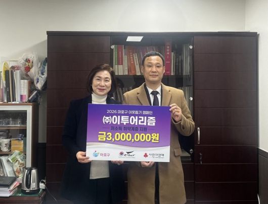 ㈜이투어리즘이 사랑의열매가 주관하는 '2026 마포구 이웃돕기 캠페인'에 동참하며, 저소득 취약계층 지원을 위한 기부금 300만 원을 전달했다고 밝혔다.