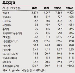 그는 이어 “2025년 매출액은 전년 대비 79% 증가한 7264억원, 영업이익은 231% 증가한 727억원을 전망한다”며 “높아진 수주잔고와 지난해 상반기 예상치를 상회했던 신규 수주 덕분에 큰 폭의 실적 성장이 예상된다”고 분석했다.