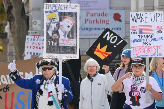 미국 캘리포니아주 패서디나에서 6일(현지시간) 활동가들이 베네수엘라에 대한 도널드 트럼프 미국 대통령의 군사 행동에 항의하는 시위를 벌이고 있다./AFP 연합뉴스 |