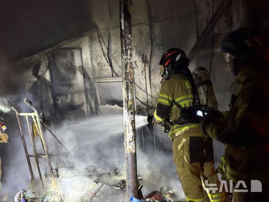 [영천=뉴시스] 영천시 화룡동 택시 회사 정비동 화재 현장. (사진=경북소방본부 제공) 2026.1.7. photo@newsis.com |