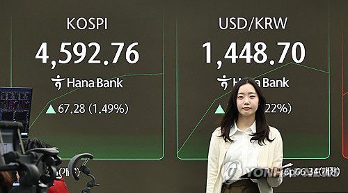 이날 오전 9시 2분 현재 코스피는 전장보다 56.52포인트(1.25%) 오른 4,582.00이다.