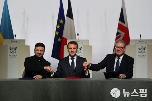 로이터통신에 따르면 키어 스타머 영국 총리와 에마뉘엘 마크롱 프랑스 대통령, 볼로디미르 젤렌스키 우크라이나 대통령은 이날 프랑스 파리에서 열린 '의지의 연합' 정상회의를 마친 뒤 이 같은 의향서에 서명했다.