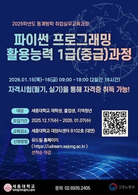 [서울=뉴시스] 세종대 '파이썬 프로그래밍 활용능력 1급과정' 포스터. (사진=세종대 제공) 2026.01.07. photo@newsis.com *재판매 및 DB 금지 |
