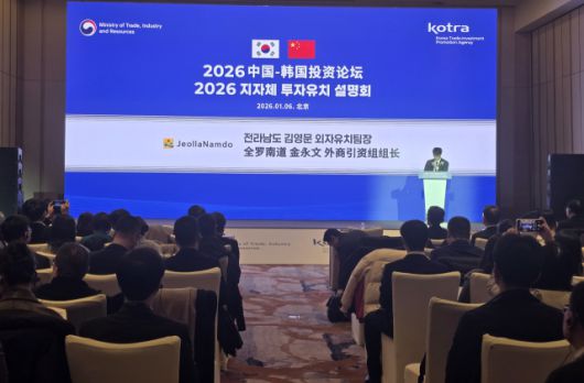 전날 베이징에서 열린 투자유치설명회에서는 전국 광역시·도 중 전남도를 포함한 지자체 등 6개 기관이 참석해 중국 유망 투자기업을 대상으로 각 지역의 투자환경과 전략산업을 소개했다.