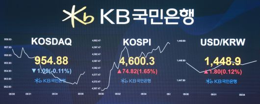 지난달 외환보유액이 7개월 만에 감소했지만 예치금은 오히려 늘며 지난 2023년 1월 이후 가장 많았다. 향후 원/달러 환율 방어를 위한 ‘실탄’을 확보한 것이라는 해석이 나온다. 7일 오전 KB국민은행 딜링룸 전광판에 원/달러 환율이 표시돼있다. [KB국민은행 제공] |