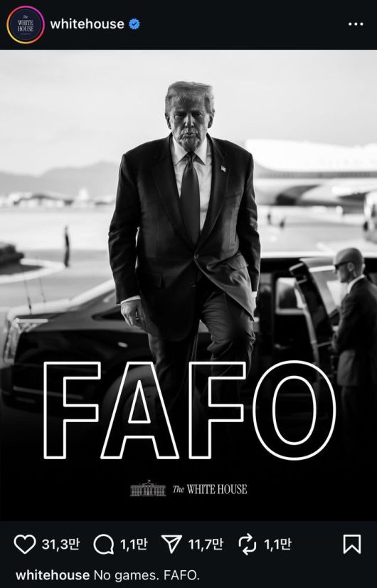 [서울=뉴시스] 미 백악관은 마두로 베네수엘라 대통령 체포 작전이 진행된 지난 3일(현지시간) 공식 인스타그램과 엑스(X)에 트럼프 대통령이 계단을 오르는 모습의 흑백 사진을 게재했다.2025.01.06.(사진=백악관 인스타그램 캡처) *재판매 및 DB 금지 |