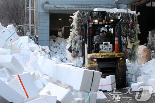 폐기물처리업체가 선물 포장용 스티로폼을 정리하고 있다. (사진은 기사 내용과 무관함) / 뉴스1 |