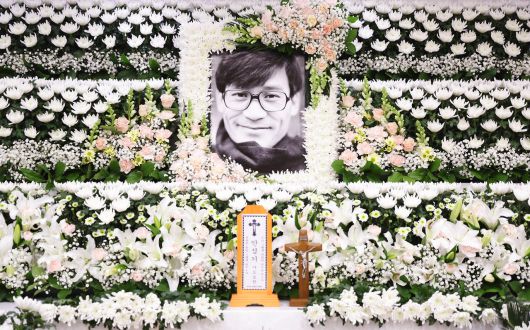 국민배우 고(故) 안성기의 빈소가 마련된 서울성모병원 장례식장. 조문객들을 가장 먼저 맞이한 것은 우리가 기억하는 노년의 중후한 모습도, 투병 중인 초췌한 얼굴도 아니다. 뿔테 안경 너머 선한 눈망울과 온화한 미소를 머금은, 서른다섯 살 청년 안성기의 흑백 사진이다.