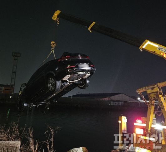 사고 승용차는 육상 크레인을 이용해 인양됐으며, 여수해경은 정확한 사고 경위를 조사 중이다.