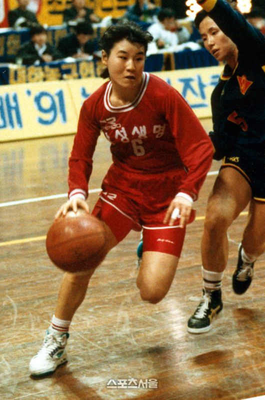 용인 삼성생명의 전설적인 슈터 최경희가 1991년 농구대잔치에서 돌파하고 있다. 사진 | 스포츠서울 DB |