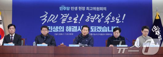 (서울=뉴스1) 신웅수 기자 = 정청래 더불어민주당 대표가 7일 서울 송파구 서울시농수산식품공사에서 열린 서울 민생 현장 최고위원회의에서 발언하고 있다. 2026.1.7/뉴스1