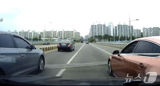 천안의 한 도로에서 보험사기 행각을 벌인 대리기사 일당이 추돌사고를 내고 있는 모습. (충남경찰청 제공, 재판매 및 DB금지) / 뉴스1 |
