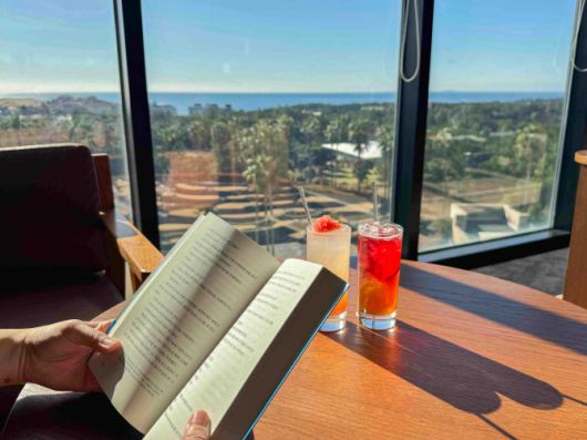 스타벅스 그랜드조선제주점에서 책과 칵테일 음료를 즐기는 모습(사진=스타벅스 제공). |