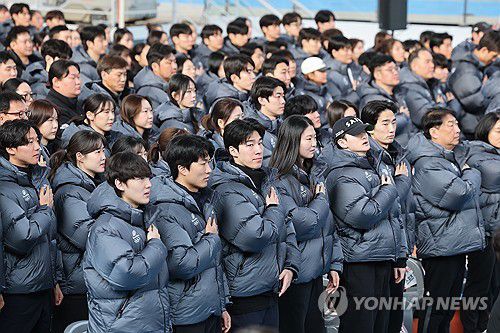 (진천=연합뉴스) 류영석 기자 = 7일 충북 진천선수촌에서 열린 에서 선수 등 참석자들이 국기에 경례하고 있다. 2026.1.7 ondol@yna.co.kr ▶제보는 카카오톡 okjebo▶연합뉴스 앱 지금 바로 다운받기~▶네이버 연합뉴스 채널 구독하기 <저작권자(c) 연합뉴스, 무단 전재-재배포, AI 학습 및 활용 금지><저작권자(c)연합뉴스. 무단전재-재배포금지.>