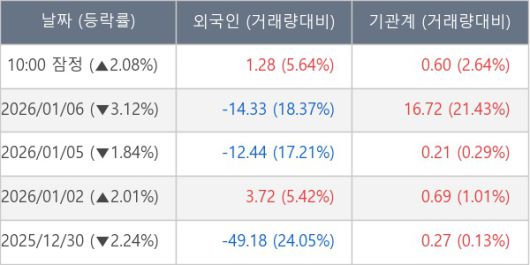 ※ 사모펀드 등 일부 기관의 순매매량은 표시되지 않음