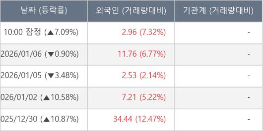 [표] 외국인ㆍ기관 순매매량 (단위 만주)