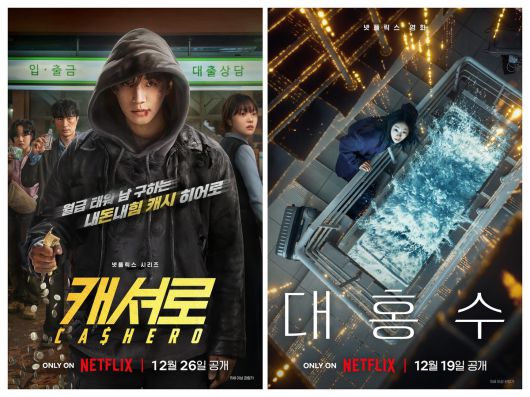 넷플릭스 시리즈 <캐셔로>와 영화 <대홍수> 포스터. 넷플릭스 제공 |