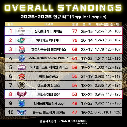 치열한 선두 각축을 벌이는 하나카드 발목을 낚아채며 정규리그 막판 순위 싸움을 안갯속으로 몰고 갔다.