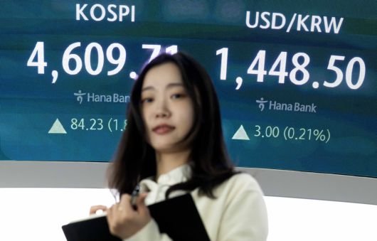 코스피가 7일 상승 출발해 장중 사상 첫 4600선을 돌파했다. 이날 오전 서울 중구 하나은행 딜링룸 전광판에 코스피 지수가 4600선을 기록하고 있다. 임세준 기자 |