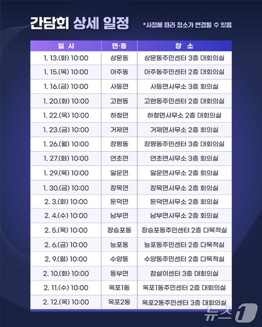 2026년 면·동 순방 일정표.(거제시 제공. 재판매 및 DB금지) |