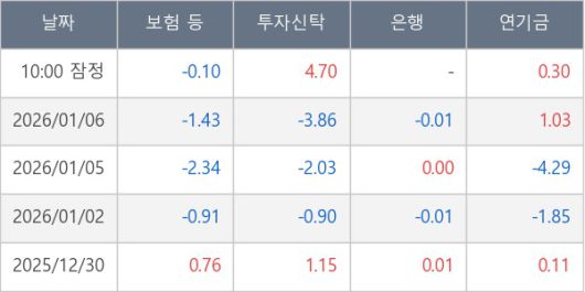 [표] 주요 기관별 순매매량 (단위 만주)