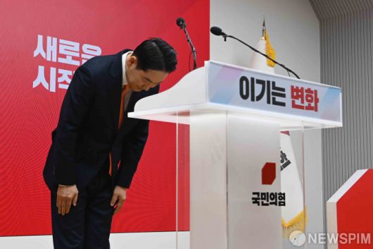[서울=뉴스핌] 윤창빈 기자 = 장동혁 국민의힘 대표가 7일 서울 여의도 국민의힘 중앙당사에서 '이기는 변화' 기자회견에서 인사하고 있다. 2026.01.07 pangbin@newspim.com