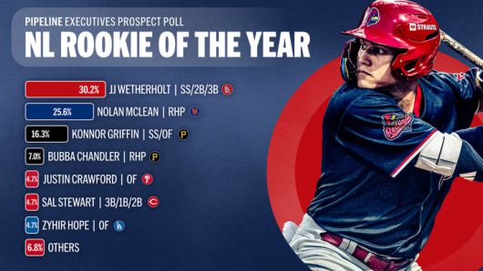 NL에서는 세인트루이스 카디널스의 유망주 JJ 웨더홀트(MLB 랭킹 5위)가 가장 많은 표를 받았다. 웨더홀트는 2024 드래프트 전체 7순위 출신으로 더블A~트리플A에서 합산 타율 .306, 출루율 .421, 장타율 .510에 17홈런, 23도루라는 강한 타격 성적을 남기며 주목받았다. 시즌 막바지에 메이저리그에서 기회를 얻지 못한 것에 대해 의아해하는 사람들도 있었으나, 내야 세 포지션을 모두 소화할 수 있기 때문에 차기 시즌 메이저리그 개막전 로스터에서 그의 이름을 볼 수 있을 것으로 추정된다.