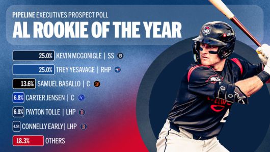 AL에서는 프런트 오피스 설문에서 토론토 블루제이스 선발투수 트레이 예세비지(MLB 랭킹 26위)와 디트로이트 타이거스 산하 마이너 유격수 케빈 맥고니글(MLB 랭킹 2위)이 공동으로 선두권에 올랐다.