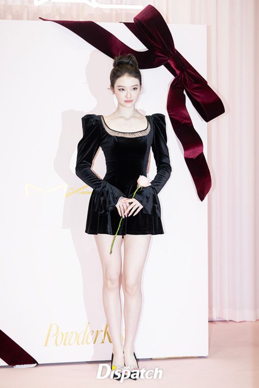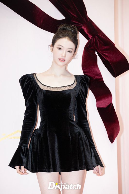 엘라는 블랙 벨벳 미니 원피스로 멋을 냈다. 인형같은 미모가 돋보였다.