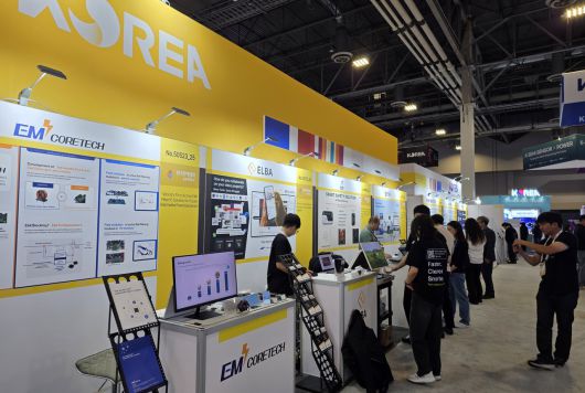 미국 라스베이거스 컨벤션센터에서 열리고 있는 ‘CES 2026’의 한국통합관 내 울산관에 전자파간섭(EMI) 필터 생산 기업인 이엠코어텍과 AI기반 실시간 콘텐츠 피드백 통합솔루션 플랫폼 개발 기업인 ㈜엘바 등 울산 지역 중소기업들이 홍보부스를 마련했다. [울산시 제공] |
