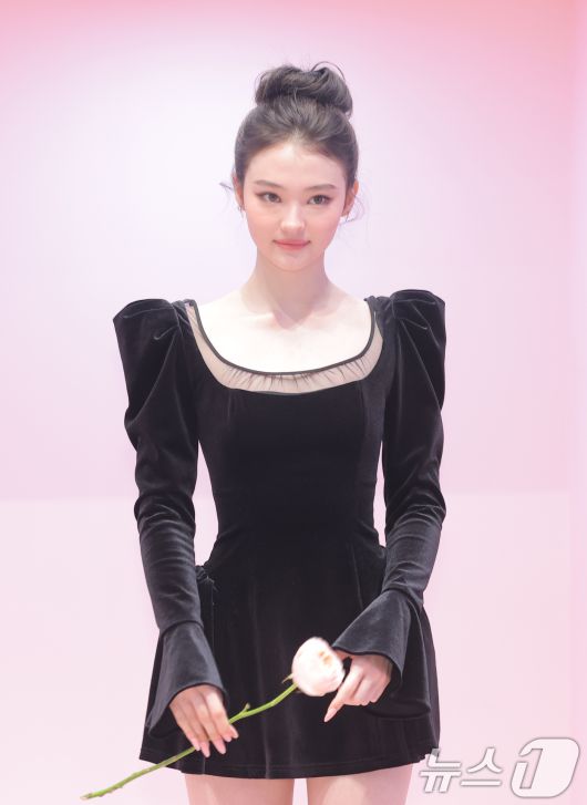 (서울=뉴스1) 권현진 기자 = 미야오 엘라가 7일 서울 성동구 무신사 스토어 성수 대림창고에서 열린 뷰티 브랜드 '맥, NEW 파우더 키스 컬렉션' 팝업 행사에 참석해 포즈를 취하고 있다. 2026.1.7/뉴스1