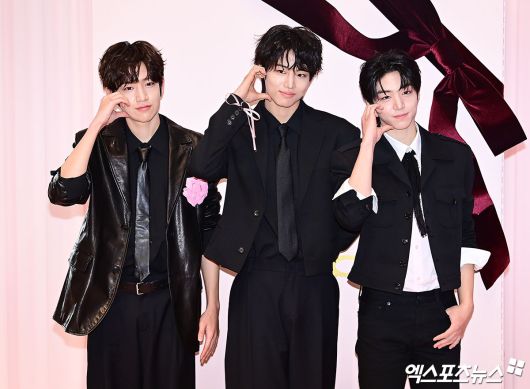 (엑스포츠뉴스 박지영 기자) 7일 오전 서울 성수동 대림창고에서 글로벌 메이크업 브랜드 새 컬렉션 출시 기념 포토콜 행사가 진행됐다. 이날 행사에 참석한 아이딧 장용훈, 김민재, 백준혁이 포토타임을 갖고 있다.박지영 기자 jypark@xportsnews.com