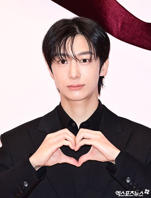 이날 행사에 참석한 몬스타엑스 형원이 포토타임을 갖고 있다.