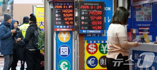 (서울=뉴스1) 안은나 기자 = 7일 서울 중구 명동의 환전소에서 관광객들이 환전을 하고 있다. 한국은행 경제통계시스템(ECOS)에 따르면 지난해 12월 뉴스심리지수는 평균 113.07을 기록했다. 고환율과 물가 부담이 동시에 덮치면서 상승세를 타던 경제 심리가 4개월 만에 꺾인 것으로 보인다. 2026.1.7/뉴스1
