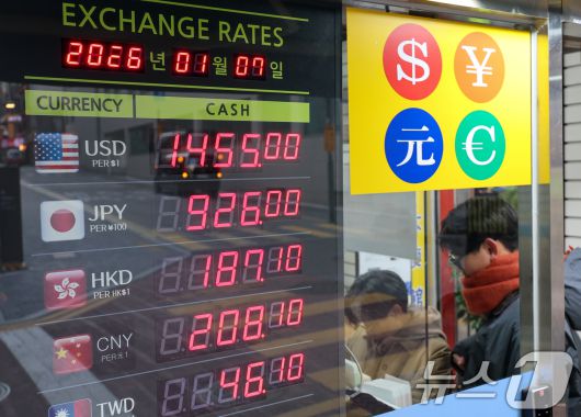 (서울=뉴스1) 안은나 기자 = 7일 서울 중구 명동의 환전소에서 관광객들이 환전을 하고 있다. 한국은행 경제통계시스템(ECOS)에 따르면 지난해 12월 뉴스심리지수는 평균 113.07을 기록했다. 고환율과 물가 부담이 동시에 덮치면서 상승세를 타던 경제 심리가 4개월 만에 꺾인 것으로 보인다. 2026.1.7/뉴스1