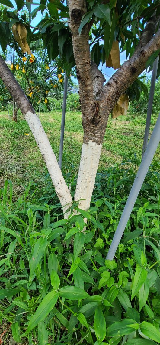 과수전용 흰색페인트를 바른 복숭아나무 [농촌진흥청 제공] |