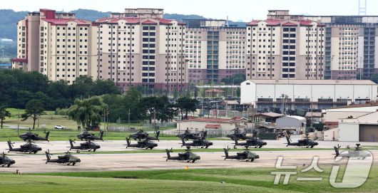 경기 평택시 주한미군기지 캠프 험프리스에 헬기가 계류돼 있다. 2025.8.17/뉴스1 ⓒ News1 구윤성 기자 |