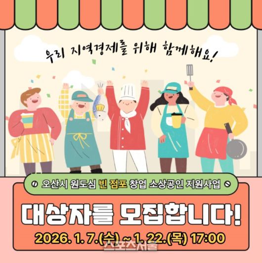 시 관계자는 “오산역 인근 원도심 상권에서 창업을 계획하고 있는 소상공인들의 많은 관심과 적극적인 참여를 바란다”고 말했다.
