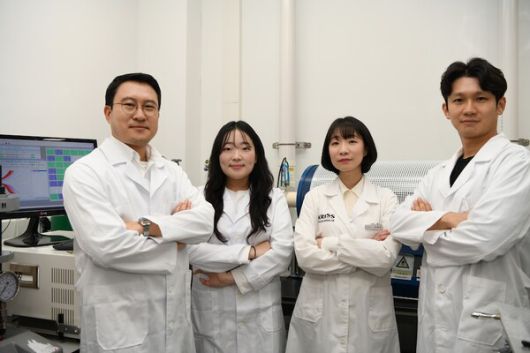 (왼쪽부터) KRISS 첨단소재측정그룹 백승욱 책임연구원, 최민서 학생연구원, 김화정 박사후연구원, 고려대학교 신소재공학과 박혁준 교수 [사진: 한국표준과학연구원] |