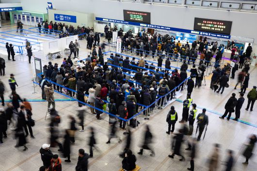 한국철도공사(코레일)가 설 연휴를 맞아 오는 15일부터 ‘2026년 설 연휴 승차권 예매’를 시행한다. 사진은 서울역에서 시민들이 승차권 구입을 위해 기다리고 있는 모습. /뉴스1 |