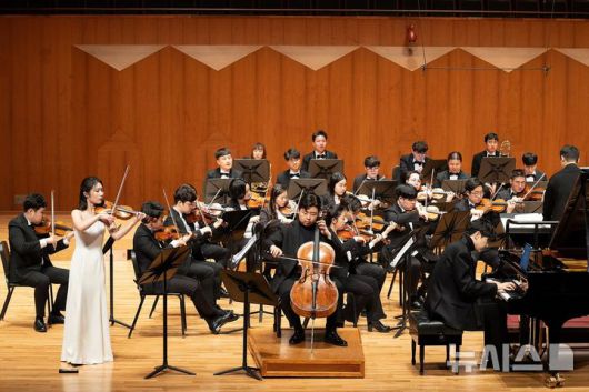[서울=뉴시스]신한은행은 발달장애인 연주자들로 구성된 관현악단 '하트하트 오케스트라'와 클래식 음악 신예들이 함께한 '2025 위드콘서트를 개최했다고 26일 밝혔다. (사진=신한은행 제공). 2025.02.26. photo@newsis.com |
