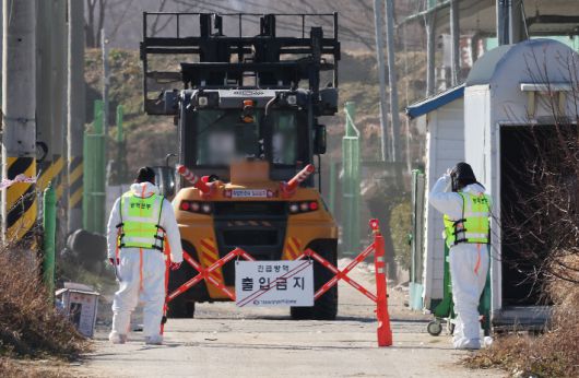 고병원성 조류인플루엔자(AI)가 발생한 경기도 평택시 산란계 농장 출입이 통제되고 있다. 연합뉴스 |