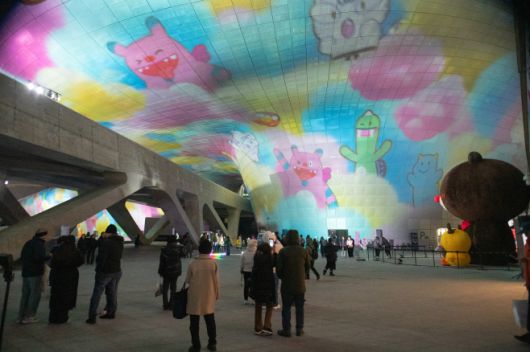 동대문디자인플라자(DDP) 외벽에 해치 캐릭터를 활용한 미디어아트 작품이 연출되고 있다. /서울디자인재단 |