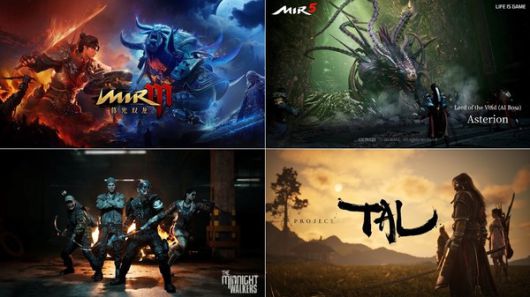 미르M: 모광쌍용(왼쪽 위부터 시계 방향으로), 미르5, 프로젝트 탈, 미드나잇 워커스 대표이미지. / 사진=위메이드 제공 |